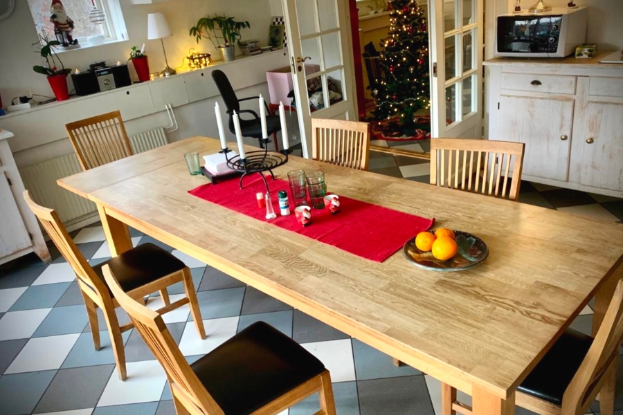 På Viljan Danska vägen finns det nio rum, alla med egen dusch och toalett. I det allmänna utrymmet finns det ett TV-rum, en matsal och ett gemensamt kök. Vi serverar hemlagad frukost, lunch och middag dagligen och våra boende har möjlighet att hjälpa till vid förberedelser och tillagning, som en del av ADL-träningen.